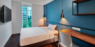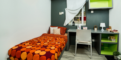 U Residence是由Taylor's Hostel Management经营的旗舰校内宿舍。这栋 6 层高的建筑拥有 890 张床位,分布在 128 间公寓和 116 间独立的套房单元中,所有房间都布置高雅,配有床、床垫、衣柜、学习桌椅。 Ruemz 房间类型及租金 01 套间单人间