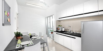 单人间: •这种公寓类型有共用洗手间和食品储藏室,提供微波炉(用于加热食物)和冰箱。 •房间或公寓内禁止烹饪 • 1层提供公用厨房 • 每间客房免费使用空调180小时(可充值) • 每间客房的人数:1 • 预订押金:RM2,500 • 每人每月租金:RM1,300 双床间: •这种公寓类型有共用洗手间和食品储藏室,提供微波炉(用于加热食物)和冰箱。 •房间或公寓内禁止烹饪 • 1层提供公用厨房 • 每间客房免费使用空调180小时(可充值) • 每间客房的人数:2 • 预订押金:RM2,500 • 每人每月租金:RM970 03 公寓-带小厨房